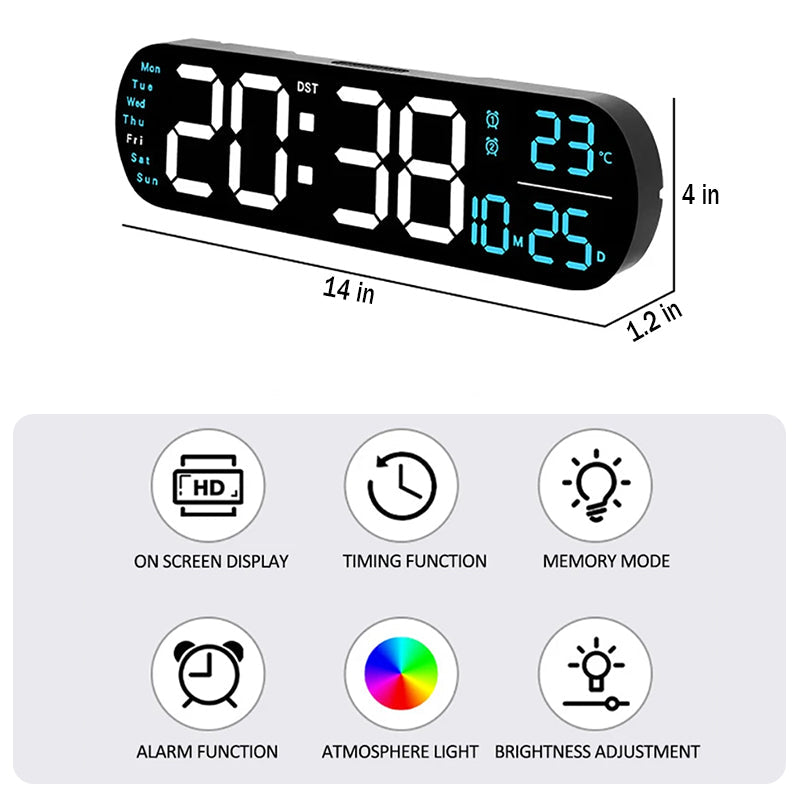 Remote control: Equipped with a remote control, which can remotely control the LED electronic clock. Two-color design distinguishes different areas and allows you to see the time more intuitively.