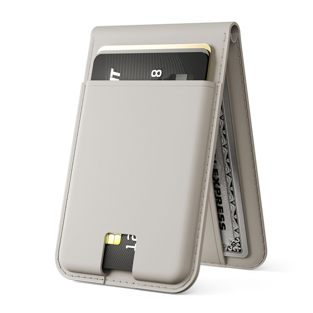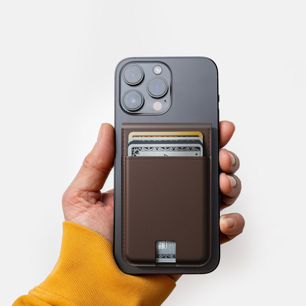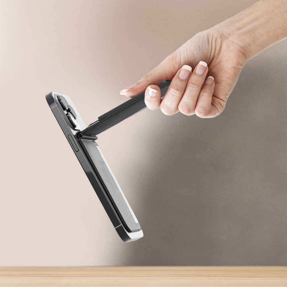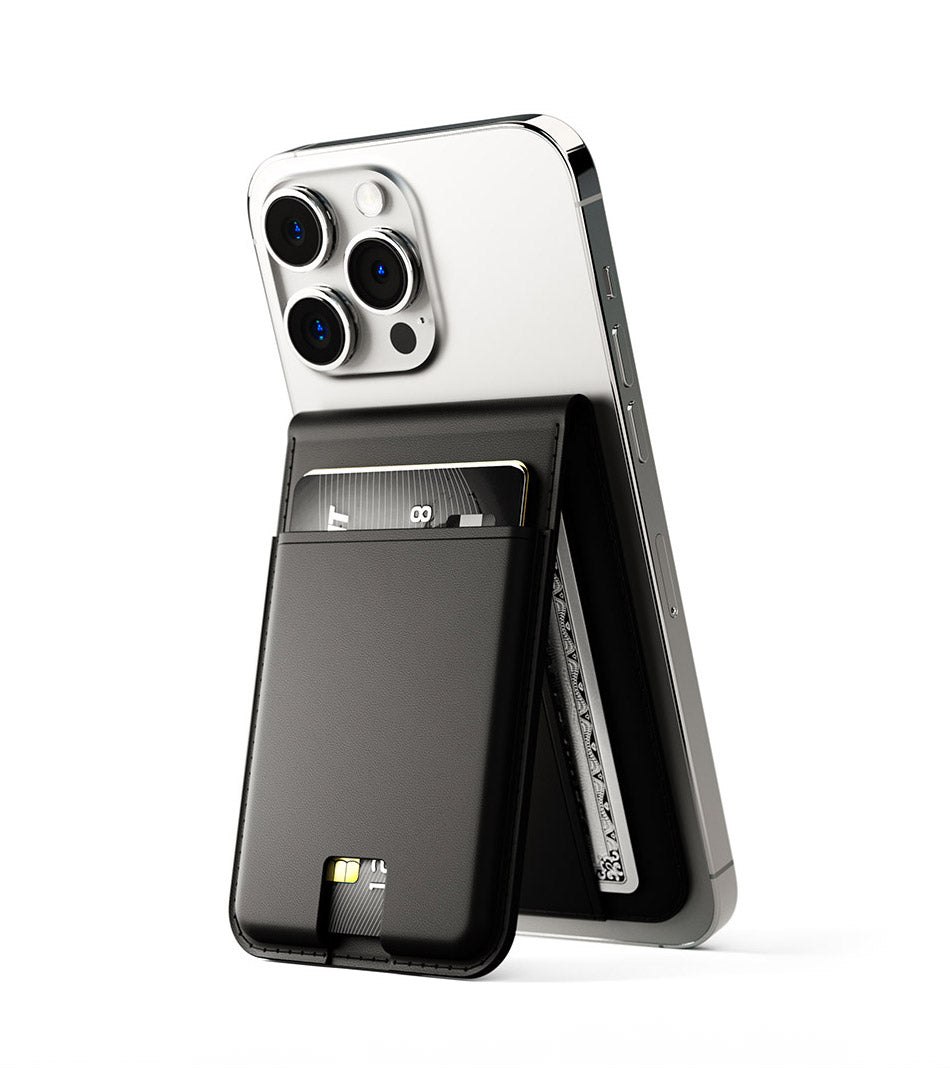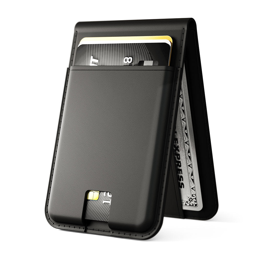 This slim, vegan leather wallet attaches magnetically to your iPhone and stores up to 5 cards. It also doubles as a stand, so you can prop up your phone for hands-free viewing. Made with high-quality materials, this wallet is both stylish and functional.