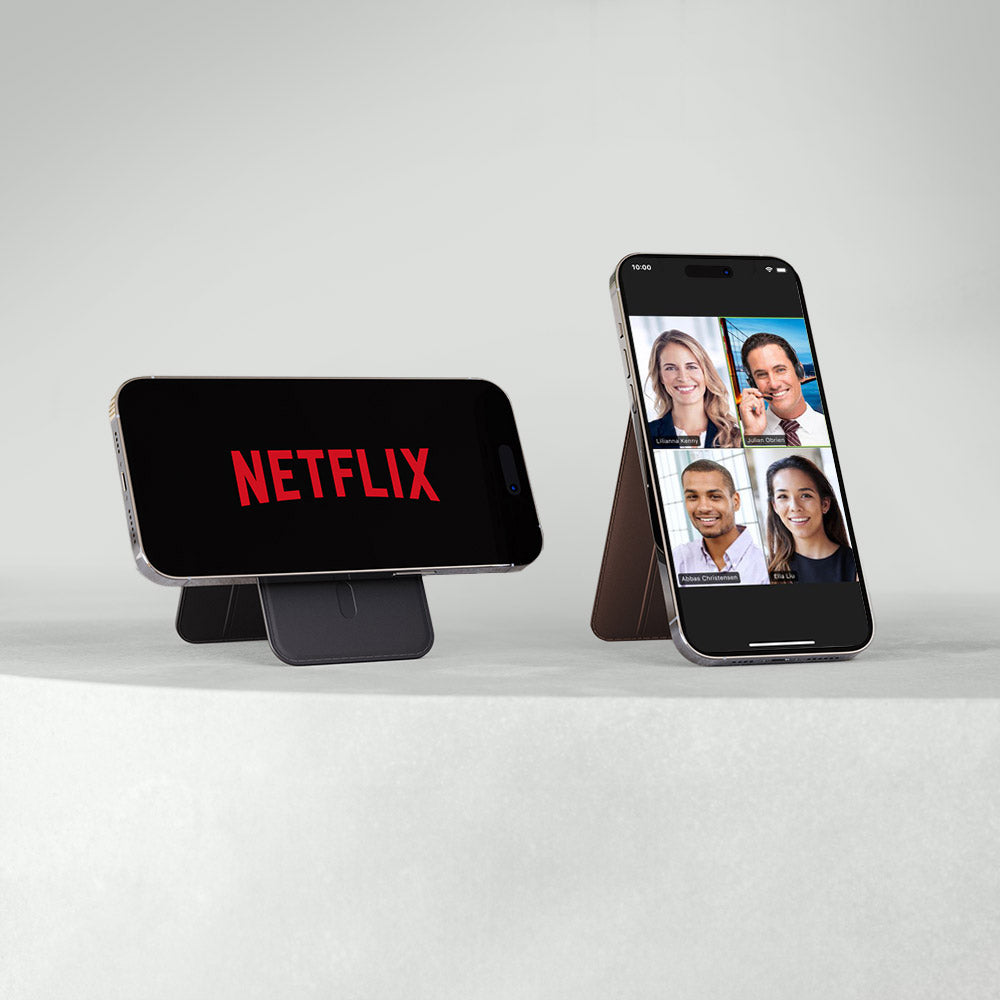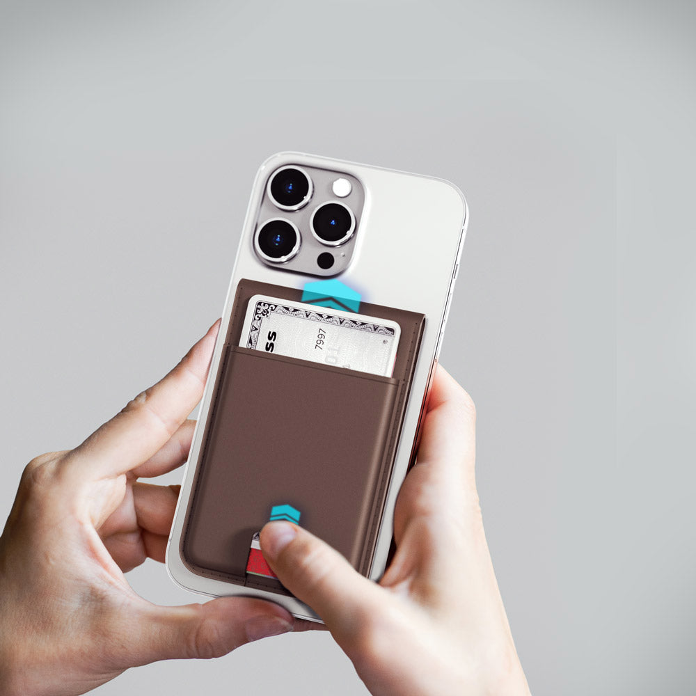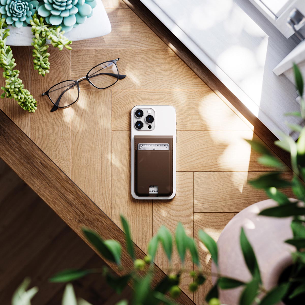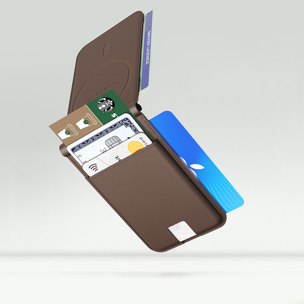 This slim, vegan leather wallet attaches magnetically to your iPhone and stores up to 5 cards. It also doubles as a stand, so you can prop up your phone for hands-free viewing. Made with high-quality materials, this wallet is both stylish and functional.