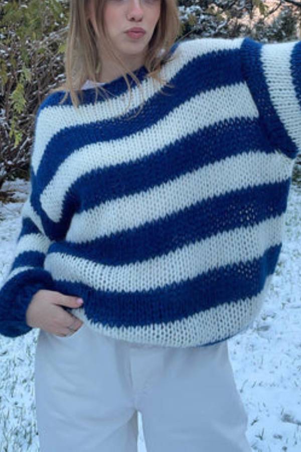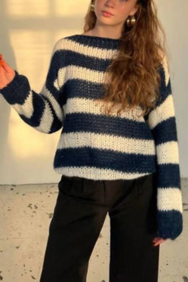 Elevate your wardrobe with the Candy Navy™ Women's Knit Jumper, crafted from soft, breathable fabric that ensures a cozy fit. Its chic striped design effortlessly blends comfort with modern style, perfect for any casual outing.