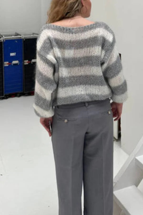 This jumper combines luxurious softness with a trendy striped design, making it an essential piece for your stylish, everyday looks.
