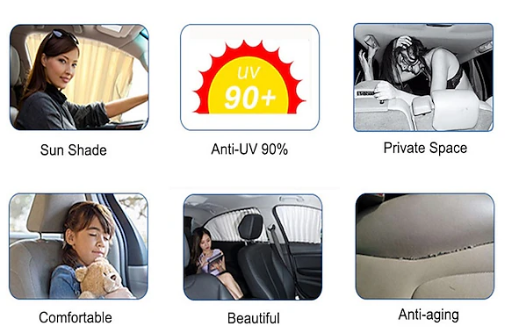 🚗 UV Protecon & Privacy – Blocks harmful rays and provides full privacy while parked.