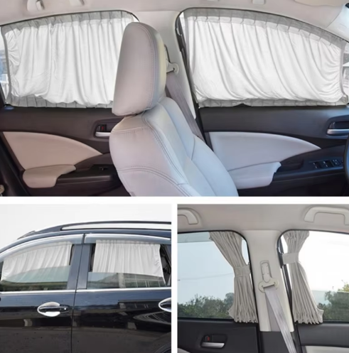These window curtains are made from durable materials and have an elastic cord that fits tightly around the window. Enjoy privacy and keep your vehicle cool!