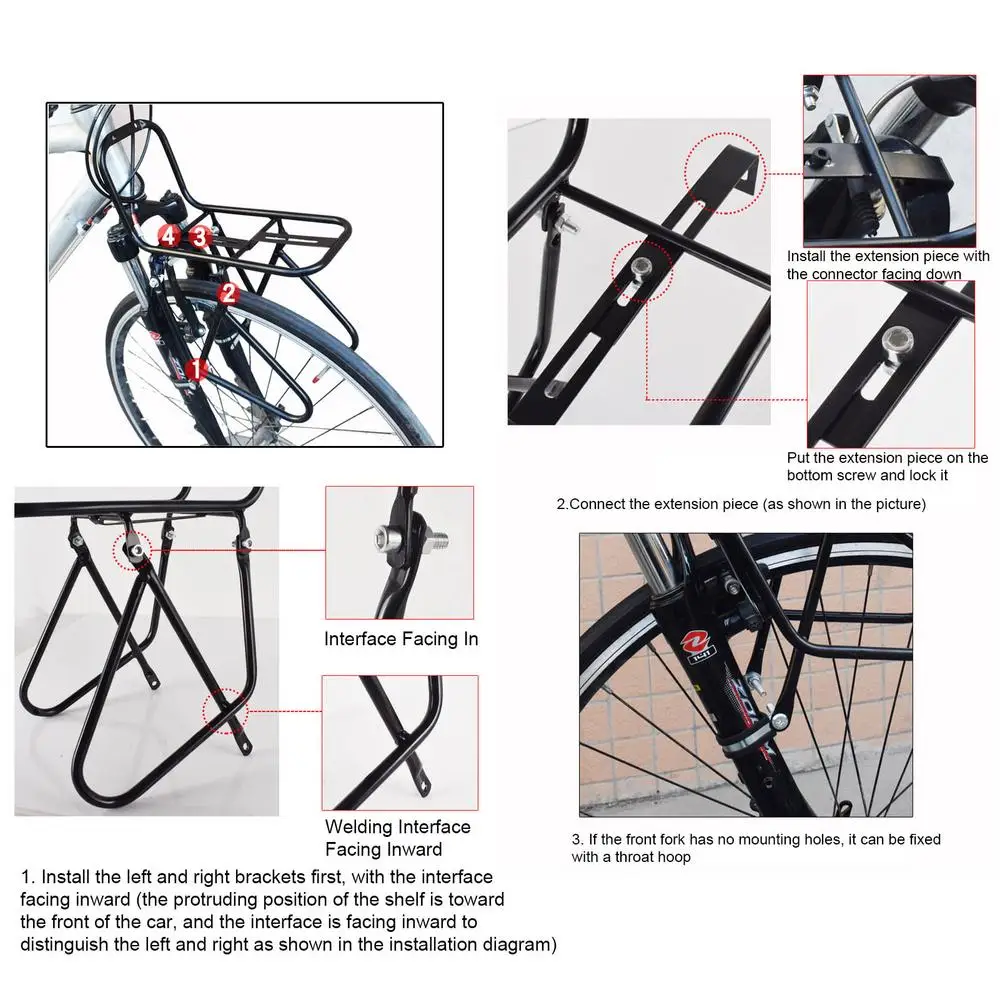 • Easy Installation: With the included mounting tool, even beginners can effortlessly install this Bike Front Carrier Rack. Simply tighten the screws to attach it to the seat tube without the need for drilling holes.