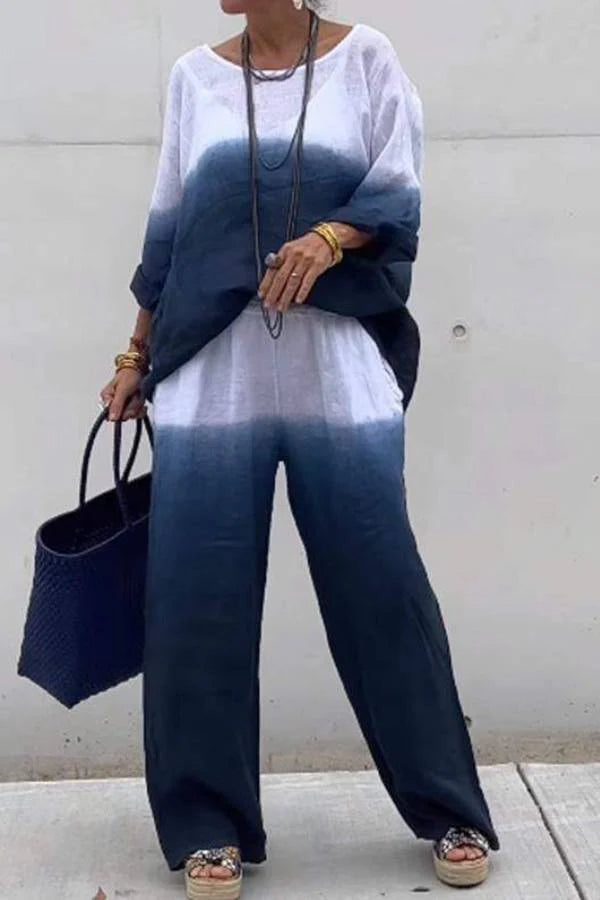 Elevate your wardrobe with this chic two-piece set crafted from a lightweight, breathable blend of cotton and linen. Its stylish gradient design ensures you stay fashionable while enjoying ultimate comfort.