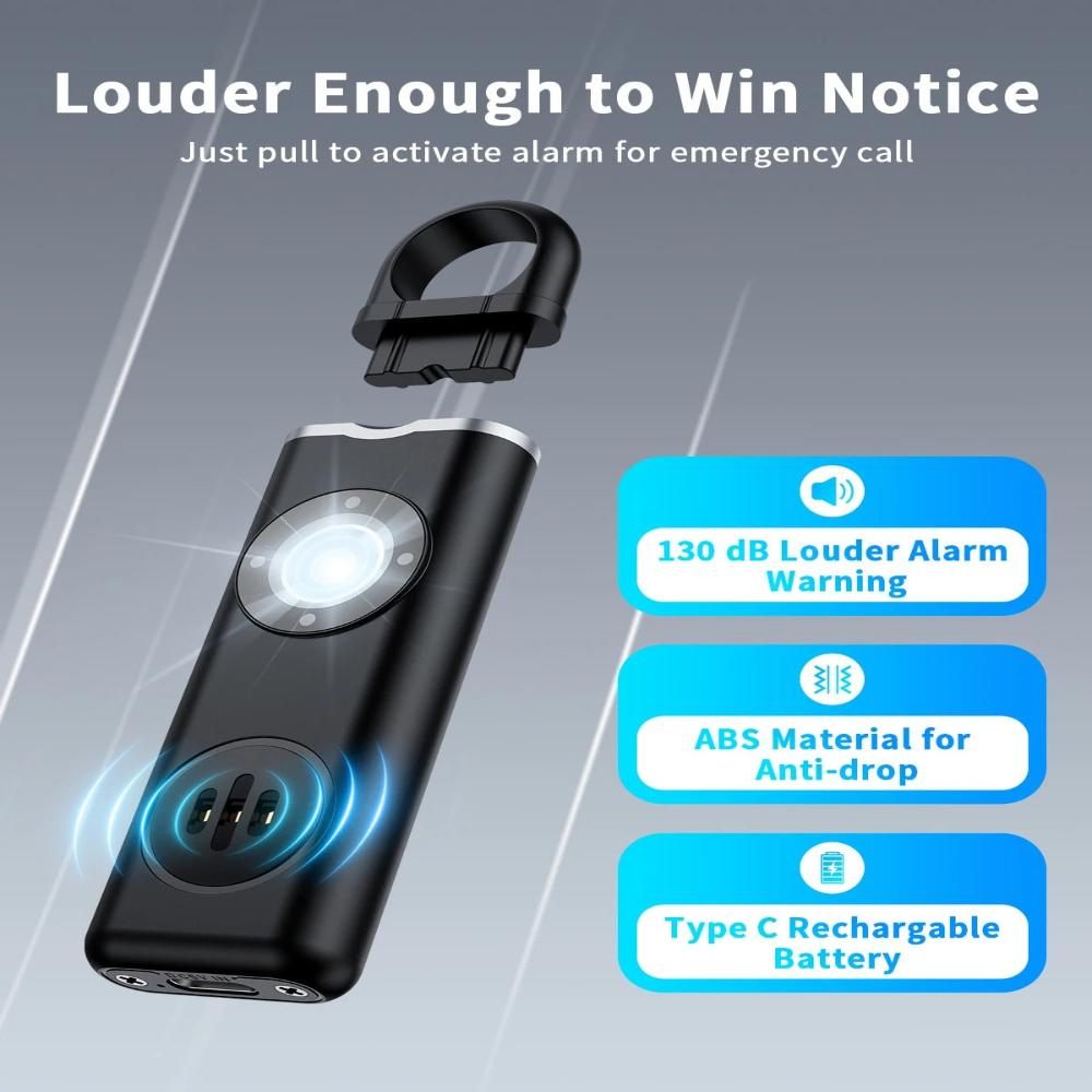 Over 130 decibels means it’s loud enough to scare away attackers, alert people nearby, and get you out of any dangerous situation.