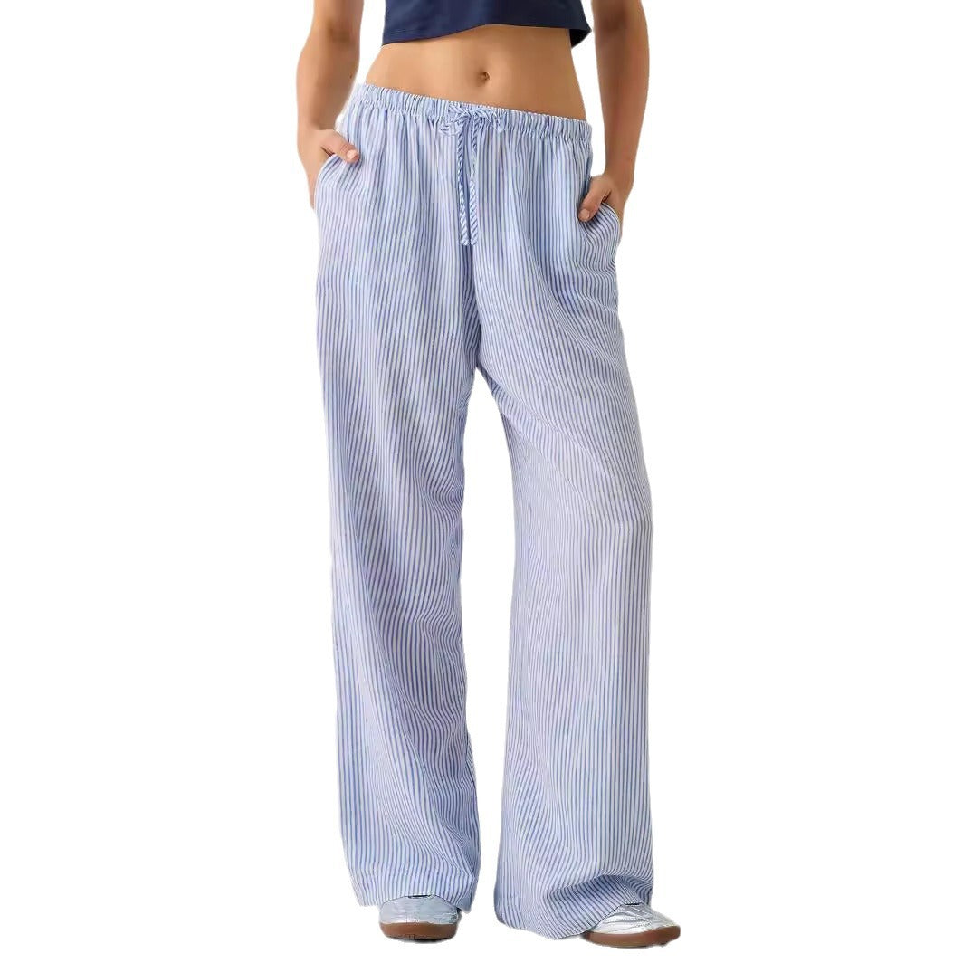 Pinstripe Belle™ | Women's Casual Loose Trousers | Elastic Waist, Lightweight Fabric & Relaxed Fit