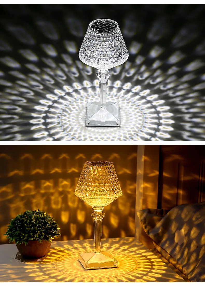 【USB Charging Desk Lamp】The crystal desk lamp adopts a USB charging interface and is equipped with a USB charging cable.