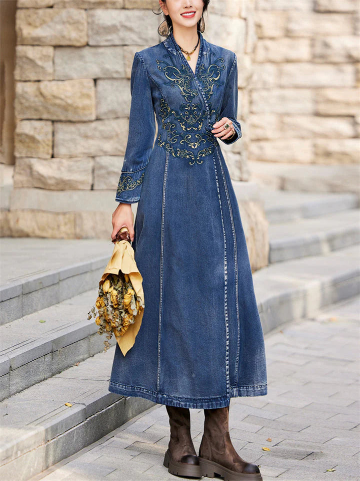 Vintage Aura™ | Ladies Vintage Embroidery Denim Dress